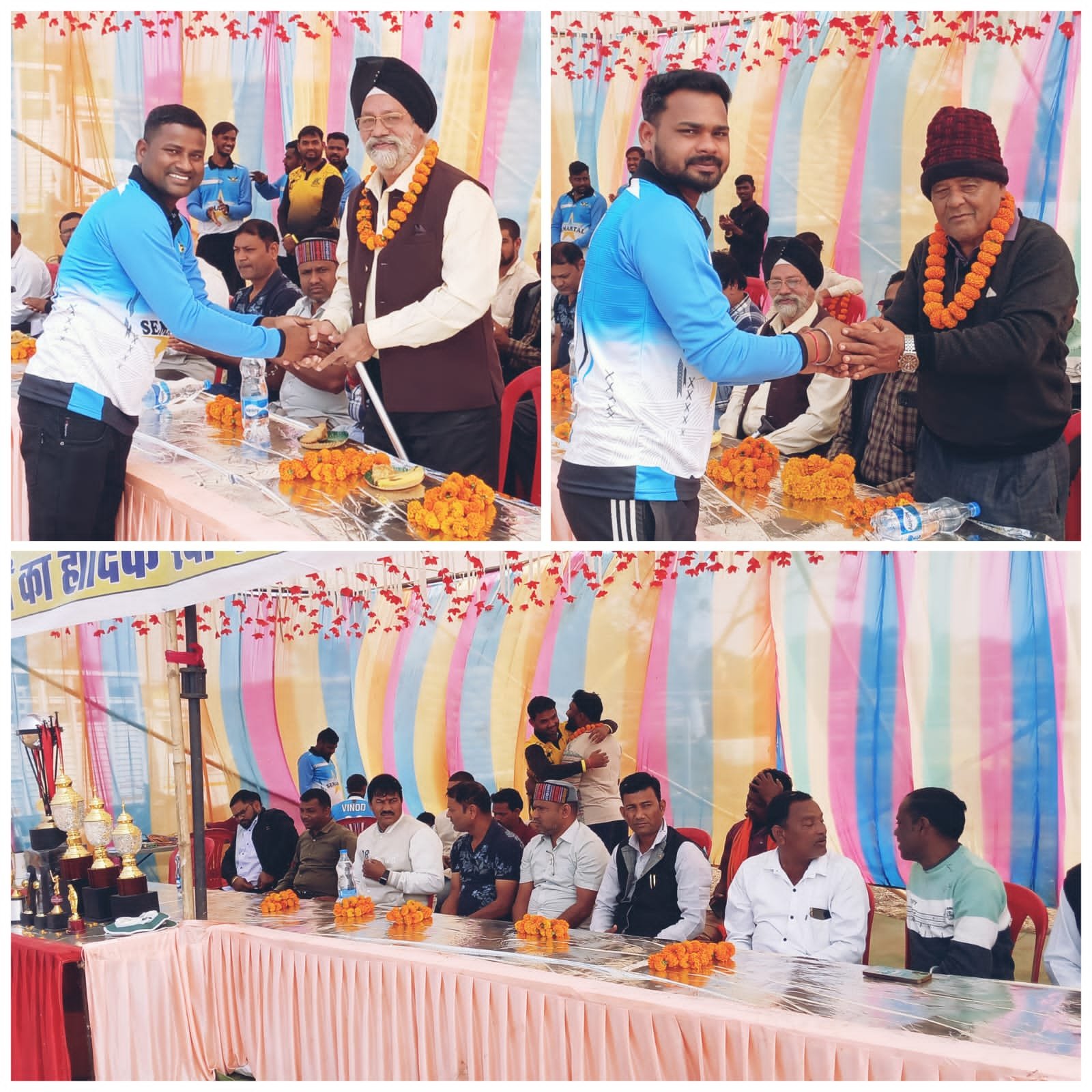 बिलासपुर :— सेमरताल ब्राइट स्टार के बैनर तले राज्य स्तरीय पंचायत क्रिकेट टूर्नामेंट का आयोजन हुवा।जिसकी तैयारी जोरों से विगत दिनों चल रहा था।सभी के प्रयास से आज धान मंडी मैदान सेमरताल में क्रिकेट टूर्नामेंट का सफल आयोजन के साथ समिति के अध्यक्ष मंथन साहू उपाध्यक्ष इंद्रजीत धीवर के साथ सचिव धनंजय साहू के माध्यम से प्रथम ईमान 30001 द्वितीय 15001 तृतीय 8001 चतुर्थ ईनाम 4001व कप के साथ बहुत सारे सांत्वना ईनाम मेन ऑफ द मैच के साथ रखा गया।कार्यक्रम में मुख्य अतिथि के रूप में सर्वप्रथम ग्राम पंचायत सरपंच धनित्तर सूर्यवंशी के साथ विशिष्ट अतिथि भाजपा नेता मनीष ठाकुर जो पूर्व विधायक रजीनिश सिंह के भाई ने हर्ष वर्ष मुझे अतिथि के रूप में ब्राइट स्टार क्रिकेट टीम समिति ने जो यह सम्मान दिया वे मेरे लिये बहुत बड़ी सौभाग्य की बात है।अभी आयोजन टिप को बधाई देते हुवे।खिलाड़ियों का उत्साहित करते हुवे सम्बोधित कर अपनी बात रखी। जनपद सदस्य राजेन्द्र साहू वरिष्ठ पत्रकार एवं नव भारत मिशन के प्रदेश उपाध्यक्ष उमाशंकर साहू ने कहा कि इस तरह के आयोजन से पूरे युवा खिलाड़ियों को एक नया ऊर्जा मिलता है।सभी खिलाड़ी भावना से खेल कर अपने गांव देश का नाम रोशन कर देश हित मे कार्य करें।व काग्रेश नेता अनिल यादव ने मिलकर