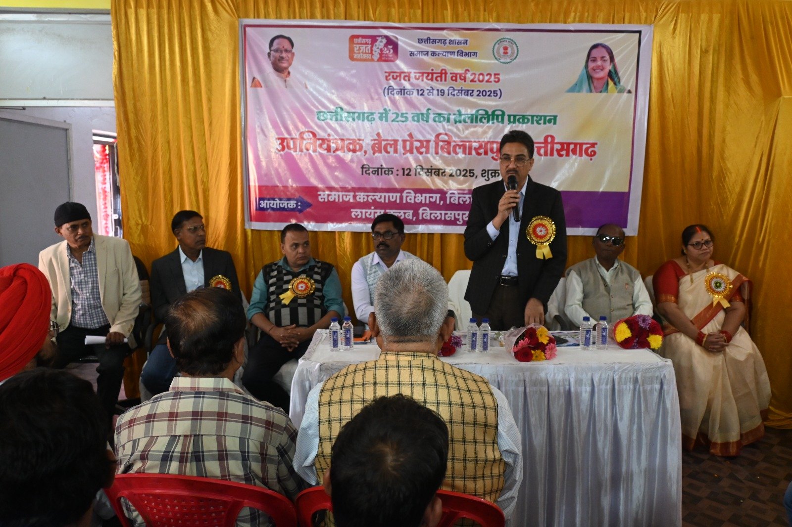 बिलासपुर // छत्तीसगढ़ रजत जंयती वर्ष 2025 के अवसर पर विशेष उपलब्धियों को प्रदर्शित करते हुये विशेष सप्ताह का आयोजन किया जा रहा है। इसी क्रम में ब्रेल लिपि के प्रकाशन एवं उपलब्धियों पर आधारित विशेष कार्यक्रम का आयोजन उपनियंत्रक ब्रेल प्रेस कार्यालय में किया गया। कार्यक्रम की शुरूआत दृष्टिबाधित बालिकाओं द्वारा राज्यगीत एवं सरस्वती वंदना गीत की प्रस्तुति से की गई।