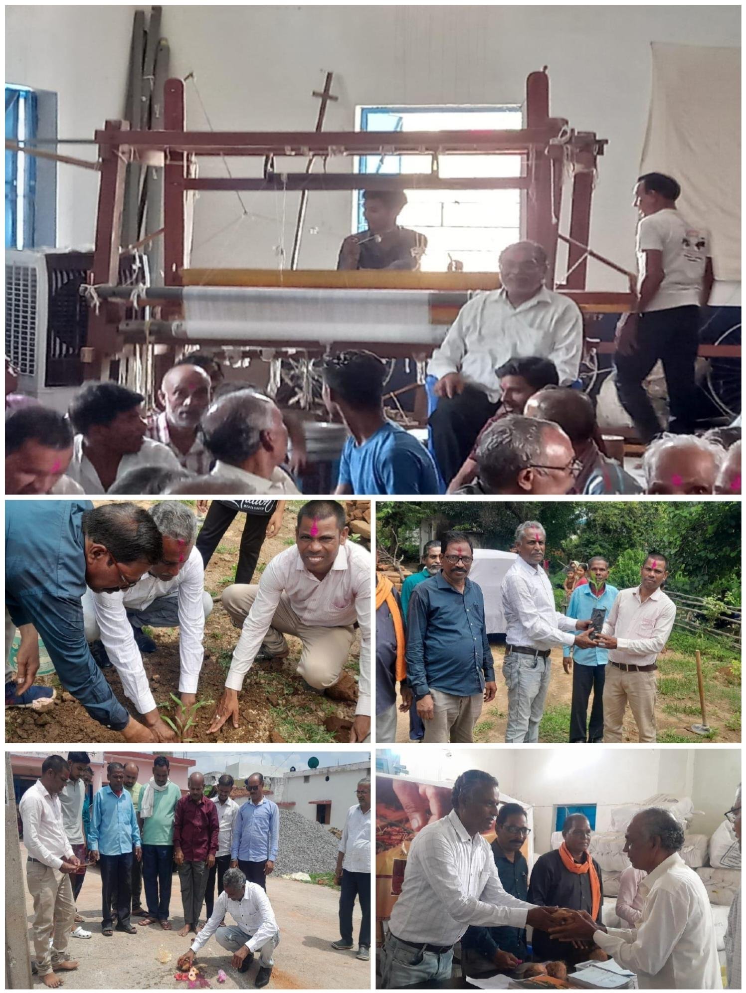 ग्रामोद्योग विभाग, संचालनालय हाथकरघा रायपुर द्वारा सत्यनारायण बुनकर सहकारी समिति में आहता निर्माण हेतु समग्र हाथकरघा विकास योजनान्तर्गत राशि रूपये 10 लाख की स्वीकृति दी गयी। उक्त राशि से समिति में अहाता निर्माण किये जाने हेतु भूमि पूजन किया गया। कार्यक्रम में उपस्थित श्री डोमूदास धकाते उपंसचालक जिला हाथकरघा कार्यालय बिलासपुर द्वारा हाथकरघा बुनकरों के विकास हेतु संचालित भारत सरकार एवं राज्य सरकार की योजनाओं की विस्तृत जानकारी दी गयी। राज्य शासन की महत्वकांक्षी शासकीय वस्त्र प्रदाय योजनार्न्तगत प्राप्त वस्त्र उत्पादन लक्ष्य को समय सीमा में पूर्ण करने हेतु सम्मुचित मार्गदर्शन बुनकरों को किया गया। कार्यक्रम में ग्राम-लोफन्दी के सरपंच श्री अयोध्या प्रसाद देवांगन, सत्यनारायण बुनकर सहकारी समिति के अध्यक्ष बजरंग देवांगन एवं जिले की अन्य बुनकर सहकारी समिति के अध्यक्ष/प्रतिनिधि तथा ग्राम-लोफन्दी के सैकड़ों बुनकर उपस्थित रहे है।