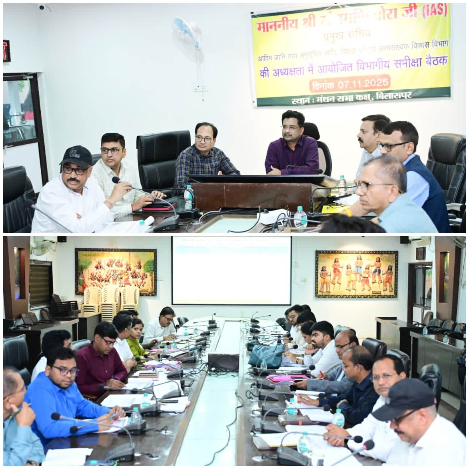 बिलासपुर // आदिम जाति एवं अनुसूचित जाति विकास विभाग के प्रमुख सचिव श्री सोनमणी बोरा ने आज जिला कार्यालय के मंथन सभाकक्ष में विभागीय योजनाओं में प्रगति की समीक्षा की। बैठक में बिलासपुर संभाग सहित कुल 10 जिलों बिलासपुर, जांजगीर-चांपा, सक्ती, सारंगढ़-बिलाईगढ़, बलौदाबाजार, मुंगेली, कबीरधाम, रायगढ़ एवं कोरबा के अधिकारी उपस्थित रहे। बैठक में कलेक्टर श्री संजय अग्रवाल, मुख्य कार्यपालन अधिकारी जिला पंचायत श्री संदीप अग्रवाल, जिला पंचायत सीईओ, संबंधित सहायक आयुक्त एवं विभागीय अधिकारी मौजूद थे। श्री बोरा ने अधिकारियों से कहा कि विभागीय योजनाओं की निगरानी नियमित समीक्षा एवं फील्ड निरीक्षण के माध्यम से की जाए। उन्होंने अधिकारियों से जनजातीय समुदाय के बीच जाकर योजनाओं की जानकारी देने, संपर्क एवं संवाद बढ़ाने पर भी बल दिया। शासन की योजनाओं का लाभ तभी सार्थक होगा जब वह अंतिम व्यक्ति तक पहुँचे। सभी अधिकारी संवेदनशीलता और जिम्मेदारी के साथ कार्य करें।