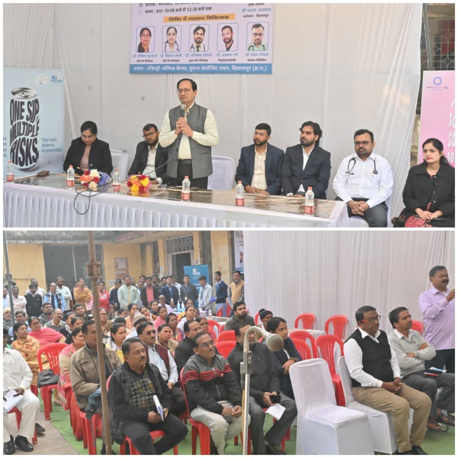 बिलासपुर // जिला प्रशासन के सहयोग से अपोलो हॉस्पिटल द्वारा निःशुल्क चिकित्सा शिविर का आयोजन ओल्ड कंपोजिट बिल्डिंग में किया गया। ओल्ड कंपोजिट बिल्डिंग परिसर में आयोजित शिविर का शुभारंभ कलेक्टर श्री संजय अग्रवाल ने अपनी स्वास्थ्य जांच कराकर किया। उन्होंने अपने स्वास्थ्य के प्रति सजग रखने की अपील की और कहा कि स्वस्थ रहकर ही हम अपने परिवार समाज और देश के प्रति अपने दायित्वों का भलीभांति निर्वहन कर सकते है। कलेक्टर श्री संजय अग्रवाल ने अपोलो प्रबंधन के इस पहल की सराहना की। इस अवसर पर निगम कमिश्नर श्री अमित कुमार भी मौजूद रहे। शिविर में 200 से अधिक लोगों की जांच की गई और विशेषज्ञों द्वारा परामर्श दिया गया।