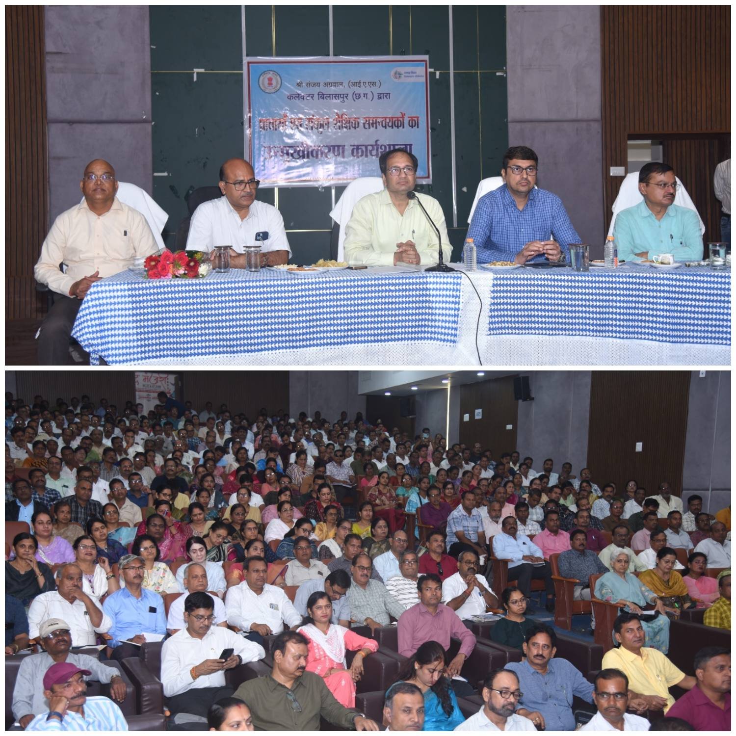 बिलासपुर :— कलेक्टर संजय अग्रवाल की अध्यक्षता में आज जिले के समस्त संकुल शैक्षिक समन्वयकों एवं प्राचार्यों की संयुक्त बैठक स्थानीय देवकीनन्दन दीक्षित सभा भवन, लाल बहादुर शास्त्री स्कूल परिसर में आयोजित की गई। बैठक का मुख्य उद्देश्य विद्यालयों में शिक्षा की गुणवत्ता में सुधार लाना और छात्रों के शैक्षणिक प्रर्दशन को बेहतर बनाना था। कलेक्टर ने सभी प्राचार्याें को निर्देश दिए कि वे विद्यालय मे ंनियमित कक्षाओं का संचालन सुनिश्चित करें। शिक्षकों की उपस्थिति पर विशेष निगरानी रखें और कमजोर छात्रों पर ज्यादा ध्यान देते हुए उनके लिए विशेष कक्षाएं आयोजित करें। उन्होंने कहा कि शिक्षा केवल पाठ्यक्रम तक सीमित नहीं होना चाहिए बल्कि छात्रों में नैतिक मूल्यों और व्यावहारिक ज्ञान का भी विकास होना चाहिए। बैठक में नगर निगम कमिश्नर श्री अमित कुमार, सीईओ जिला पंचायत श्री संदीप अग्रवाल, जिला मिशन समन्वयक श्री ओम पाण्डेय, सहायक परियोजना अधिकारी श्री रामेश्वर जायसवाल सहित जिला शिक्षा कार्यालय के समस्त अधिकारी एवं कर्मचारी उपस्थित रहे।