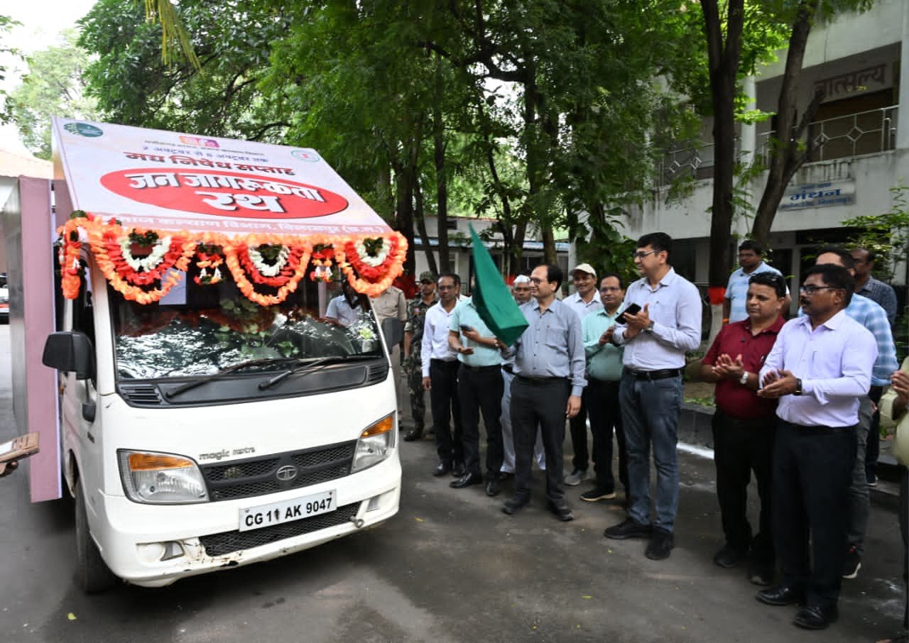 बिलासपुर // गांधी जयंती के अवसर पर कलेक्टर संजय अग्रवाल ने मद्य निषेध सप्ताह का शुभारंभ किया। उन्होंने जिला कार्यालय परिसर से नशापान के खिलाफ जन जागरूकता के लिए सजाए गए प्रचार वाहन को हरी झंडी दिखाई। समाज कल्याण विभाग द्वारा इस विशेष रथ को तैयार किया गया है। यह रथ आगामी 8 अक्टूबर तक शहर और ग्रामों का भ्रमण कर नशे की बुराइयों की जानकारी लोगों को देकर इससे दूर रहने की समझाइश देगी। कलेक्टर ने इस अवसर पर ताउम्र नशापान से दूर रहने की उपस्थित जनों को शपथ भी दिलाई। इस अवसर पर जिला पंचायत सीईओ संदीप अग्रवाल, अफीमी शिव कुमार बनर्जी, अपर कलेक्टर एसएस दुबे, संयुक्त संचालक टीपी भावे,सहायक सांख्यिकी अधिकारी प्रशांत मोकासे, उत्तम राव,अशोक कश्यप एवं जिला प्रशासन से अधिकारी कर्मचारी उपस्थित थे। समाज कल्याण विभाग के विभागीय कला पथक दल में श्री लीलाधर भांगे,विजय केसकर, कौशल कश्यप ,दादू लाल बरेठ ने गांधी जी के प्रिय भजन की सुंदर प्रस्तुति दी।