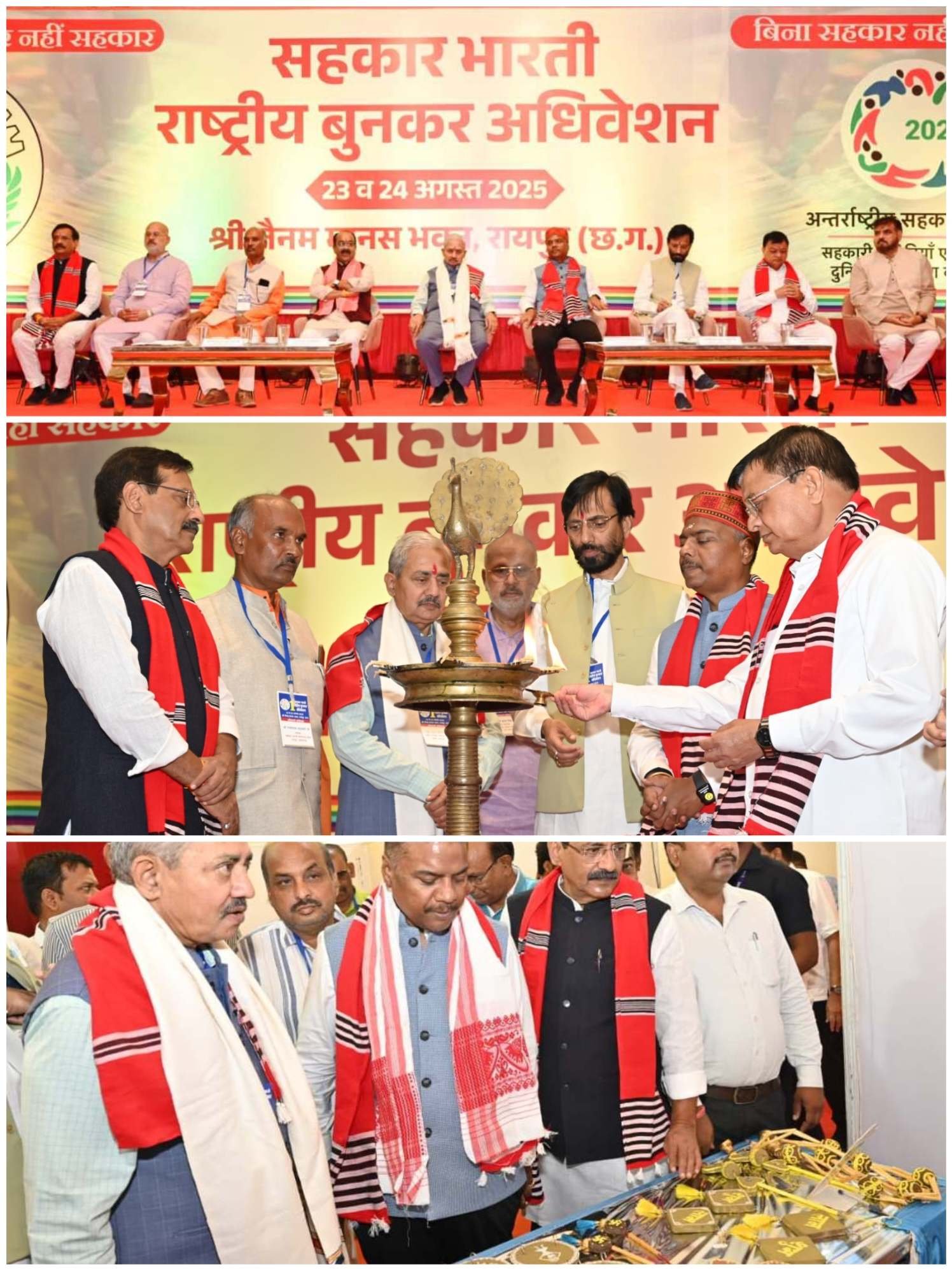 रायपुर में सहकार भारती का प्रथम राष्ट्रीय बुनकर अधिवेशन, देशभर से बुनकर संघों के एक हजार प्रतिनिधि जुटे उप मुख्यमंत्री अरुण साव, सहकारिता मंत्री केदार कश्यप और श्रम मंत्री लखन लाल देवांगन उद्घाटन सत्र में हुए शामिल
