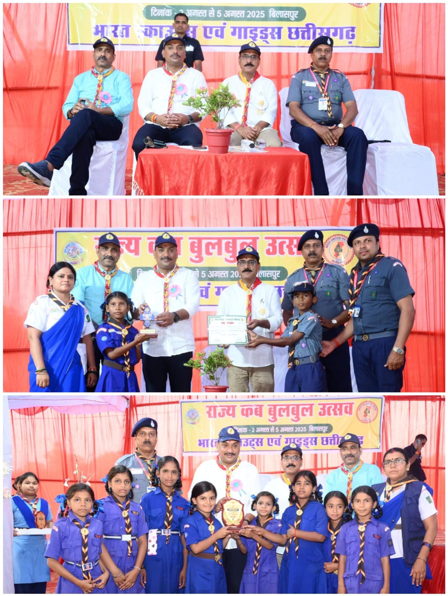 समारोह में मुख्य अतिथि के रूप में उपस्थित बेलतरा विधायक श्री सुशांत शुक्ला ने बच्चों की प्रतिभा की सराहना करते हुए कहा कि कब और बुलबुल स्काउटिंग के वो नन्हे बीज हैं, जिन्हें हम सेवा, अनुशासन और नेतृत्व के मूल्यों से सींचते हैं। यही बच्चे आने वाले समय में समाज और राष्ट्र के निर्माण में महत्वपूर्ण भूमिका निभाएंगे। ऐसे शिविरों से उनमें जिम्मेदारी, आत्मबल और समाज के प्रति संवेदनशीलता का विकास होता है। श्री सुशांत ने इस सफल आयोजन के लिए भारत स्काउट्स एवं गाइड्स छत्तीसगढ़ के सभी पदाधिकारियों को बधाई दी।